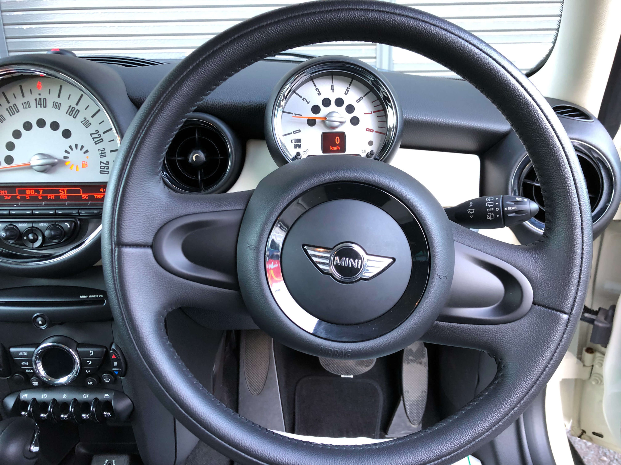 ご成約頂きましたルーフやミラー・キャップ、内装の専用装備など特別仕様で彩られた「Green Park(グリーンパーク)」パッケージのMINI クーパーです。