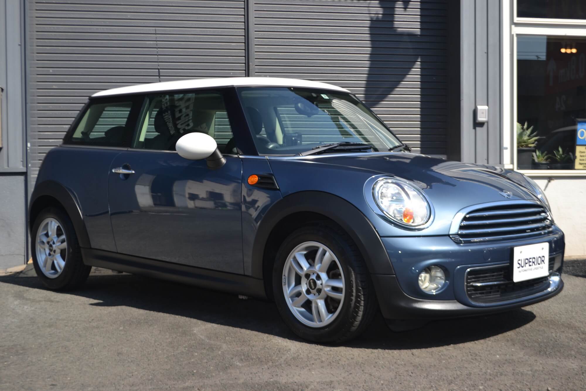希少色であるホライゾンブルーメタリック×ホワイトルーフのMINI「クーパー」が入庫致しました。