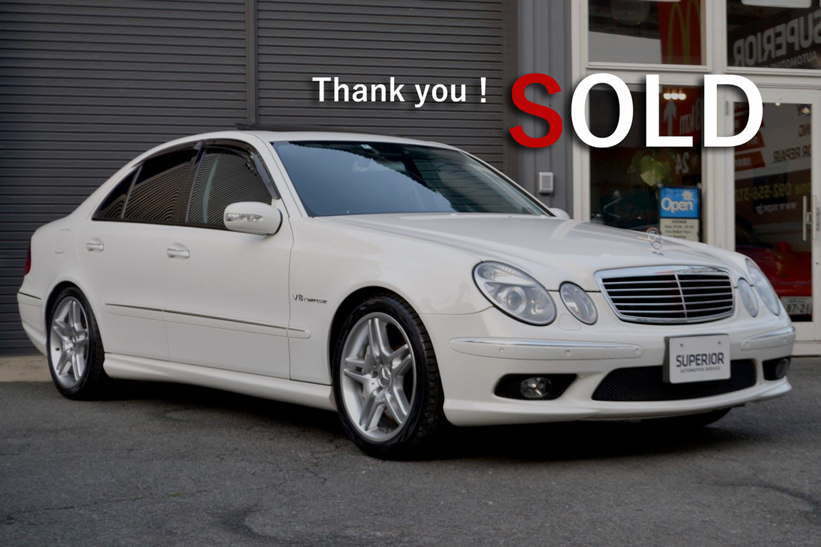 ご成約を頂きました最高出力476馬力を発生するスーパーチャージャーが付いた排気量5,438cc SOHC V8エンジン搭載のビッグパワーAMG E55です。