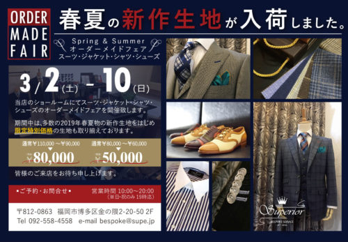 SUPERIOR BESPOKE SERVICE –春夏オーダーメイドフェア&…