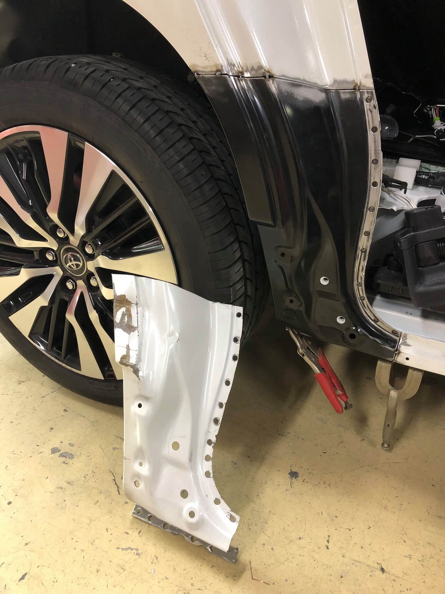 ✔️クォーターパネルも内部骨格までダメージがあるので、新品パネルへ交換。