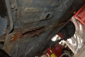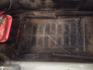 後部座席のフロアパネル。 怪しさ満点のファイバーが巻いてあったんで剥いでみたら、、、錆びてフロアが無くなり地面が見えてます。 パネル一部と補強プレートを作製・切り替えを行い終了です。 ファイバーにはファイバーを。鉄には鉄を。。 シャーシヘッドのBodyマウント部とサイドメンバーが腐食してます。 ナロービームに交換する事でビームバーも外すんで、BODY剛性が心配です。 今回は予算の兼合いもあるんで、補強プレート及びサイドメンバーを製作して剛性を上げます。 これで、2ndステージである数年後のBODYレストア予定迄、剛性は保てるでしょう。